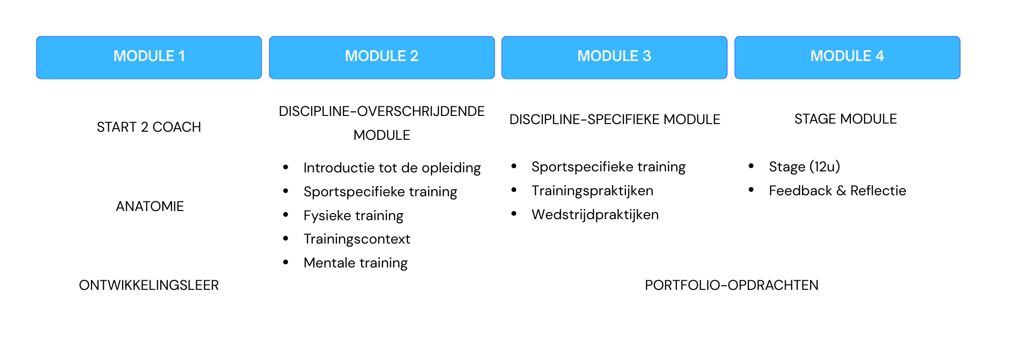 - Modules 3 en 4 dien je daarentegen samen te volgen binnen jouw specifieke discipline.