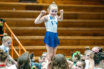 Elke gymnaste turnt volgens de vereisten voor haar leeftijdsgroep.
