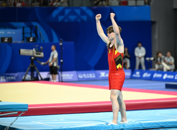 De World Games in China waren voor Dubbele Minitrampoline gymnast Brent Deklerck een onvergetelijke ervaring. Niet alleen omdat hij er de titel wist te veroveren, maar ook omdat deze wedstrijd hem confronteerde met het allerhoogste niveau van zijn discipline. “Het was heel anders dan andere wedstrijden,” blikt Brent terug. “Enerzijds was de groep kleiner, maar tegelijk stond ik tussen gymnasten van ontzettend hoog niveau. Om daar trainingen en wedstrijden mee te mogen doen, voelde als een grote eer.”