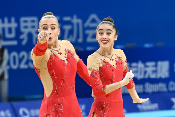 Helena en Bram starten hun kwalificaties als tweede team met hun tempo-oefening. Met spectaculaire hoogtes en knappe landingen zetten ze de toon voor Team BELGYM tijdens deze Wereldspelen. Met een totaalscore van 29,980 punten laten ze hun concurrenten ruimschoots achter zich. Israël staat voorlopig tweede, Duitsland derde.
